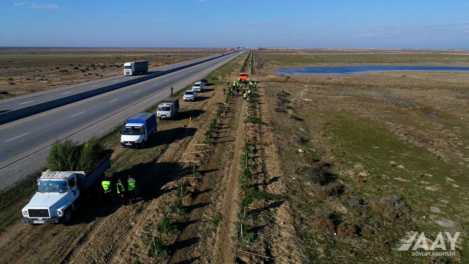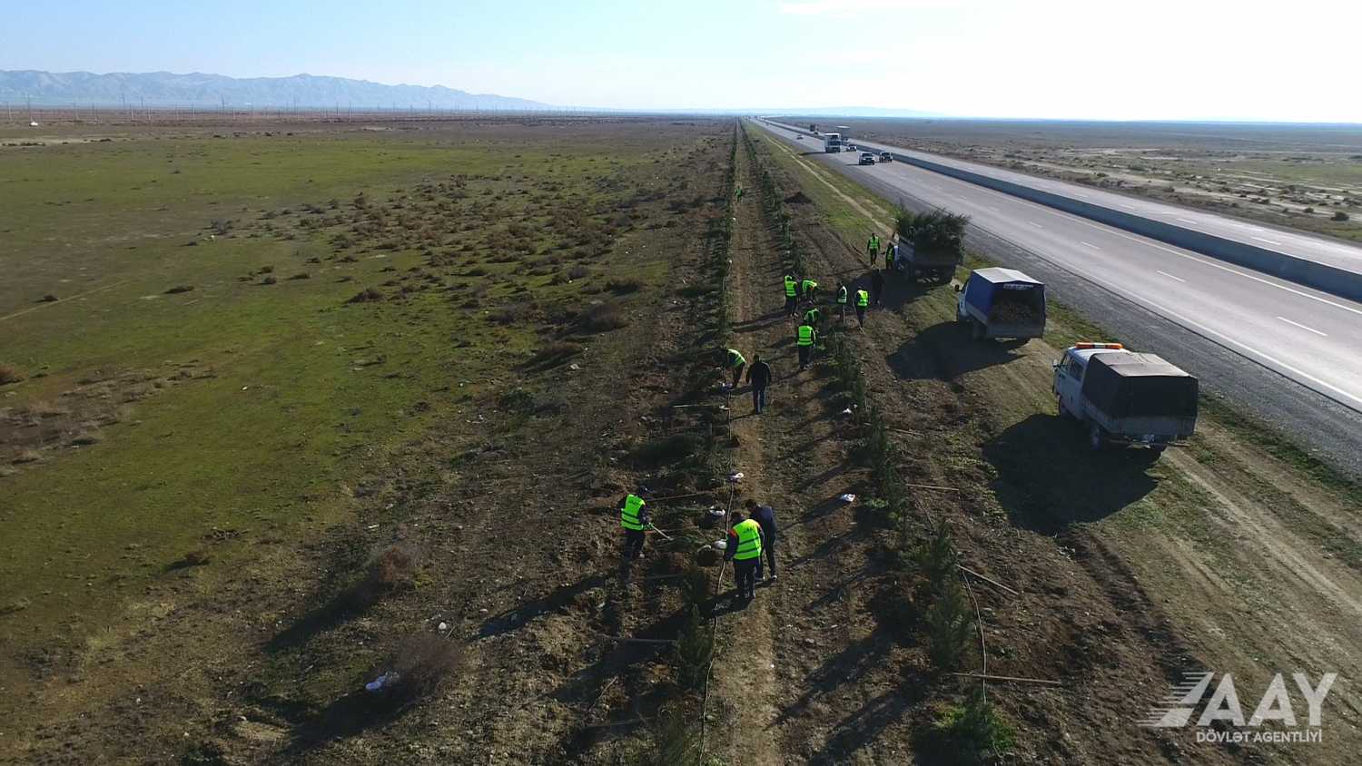 Ağacəkmə aksiyası Bakı-Ələt-Qazax-Gürcüstan ilə dövlət sərhədi avtomobil yolunun Hacıqabul rayonundan keçən hissəsində keçirilib.