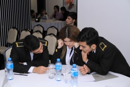 Daha sonra müsabiqəyə start verilib və 9 komandada 5 tələbə olmaqla 90 dəqiqə ərzində 45 test sualını cavablandırılıb. Birinci mərhələnin sonunda komandaların cavabları yoxlanılıb, qaliblər elan edilib.