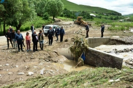 Daşkəsən Rayon İcra Hakimiyyətinin başçısı Əhəd Abıyev seldən zərər çəkən sakinlərlə görüşmək üçün əraziyə atla gedib.
