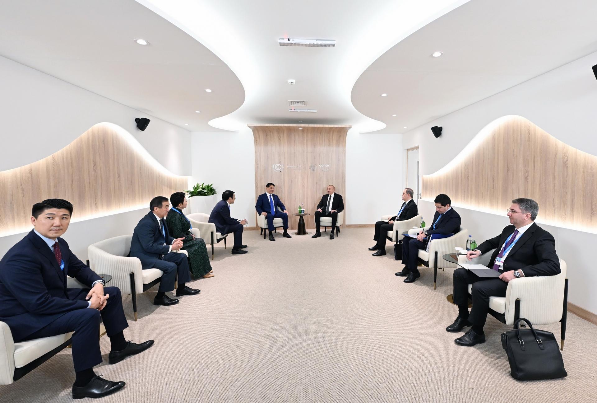 Azərbaycan Prezidenti İlham Əliyev noyabrın 11-də Monqolustan Prezidenti Uxnaaqiyn Xurelsux ilə görüşüb.