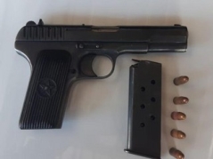 Onun üzərinə baxış zamanı 1 ədəd “TT” markalı tapança, 5 ədəd patron və 1 ədəd patron darağı aşkar olunaraq götürülüb. V.Əliyev odlu silahı bir müddət əvvəl əldə etdiyini, lakin polisə təhvil verməyərək özündə saxladığını bildirib.
