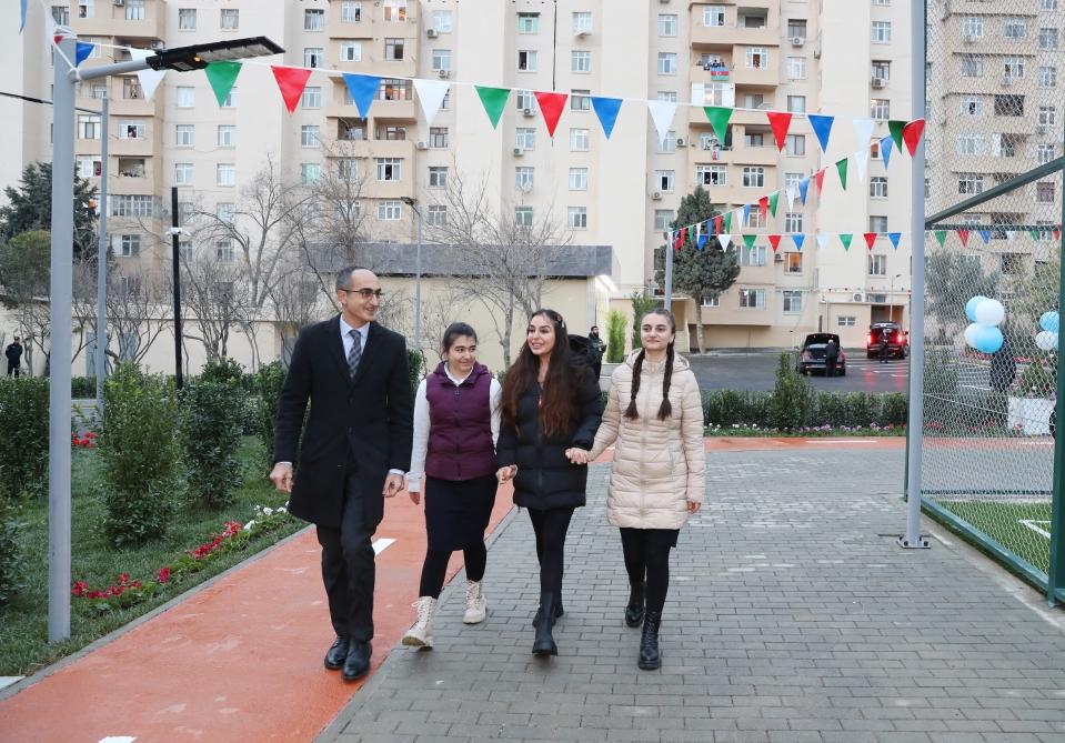 Avtosfer.az xəbər verir ki, Heydər Əliyev Fondunun vitse-prezidenti, IDEA İctimai Birliyinin təsisçisi və rəhbəri Leyla Əliyeva həyətin açılışında, o cümlədən tədbir çərçivəsində keçirilən kütləvi ağacəkmə aksiyasında iştirak edib.