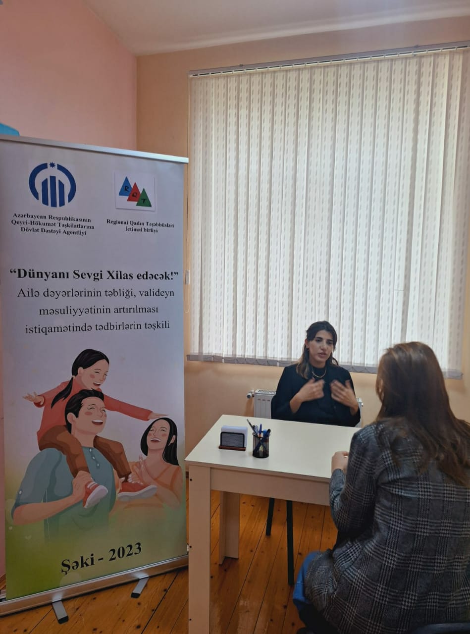 “Regional Qadın Təşəbbüsləri” İctimai Birliyi "Sevgi dünyanı xilas edəcək! Ailə dəyərlərinin təbliği, valideyn məsuliyyətinin artırılması" layihəsi ilə bağlı tədbirləri davam etdirir.