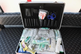 Xüsusi təyinatlı “Qazel Biznes 221717” markalı tibbi yardım nəqliyyat vasitələri ilkin yardım üçün nəzərdə tutulmuş buz çantası, buz konteyneri, tibbi xərək, onurğa zədələri üçün xərək, oksigen balonu, defibrillyator və zədə çantası kimi tibbi avadanlıqlarla təchiz edilib. Ambulansların salonlarının təchizat səviyyəsi xəsarət alanlara bütün lazımi ilkin, təcili və təxirəsalınmaz tibbi yardımın göstərilməsinə imkan verir.