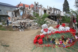 Sonra qonaqlar və iştirakçılar Gəncə terroru ilə bağlı yeniyetmə rəssamların rəsm sərgisi ilə tanış olublar.