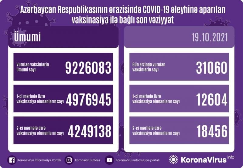 Azərbaycanda son sutkada koronavirus (COVID-19) əleyhinə 31 060 vaksin vurulub.