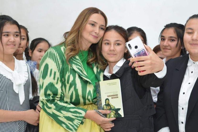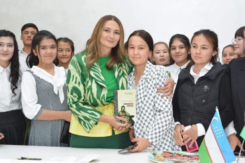 Sonra Q.Paşayeva həmmüəllifi, müəllifi, layihə rəhbəri olduğu, özbəkcəyə çevrilmiş kitablarını oxucular üçün imzalayıb, ürək sözlərini yazıb.