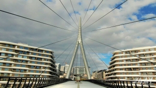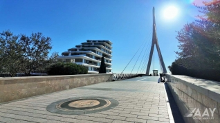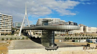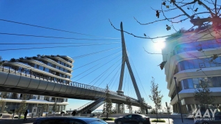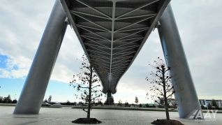 “Bakı Ağ Şəhər” yol infrastrukturunun yenidən qurulması layihəsi çərçivəsində 8 Noyabr prospekti üzərindən Bakı “Ağ Şəhər” layihəsinin Fəvvarələr meydanı parkını və Ağ Şəhər Bulvarını birləşdirən metal konstruksiyalı, müasir arxitekturaya malik yerüstü piyada körpüsü inşa edilib.