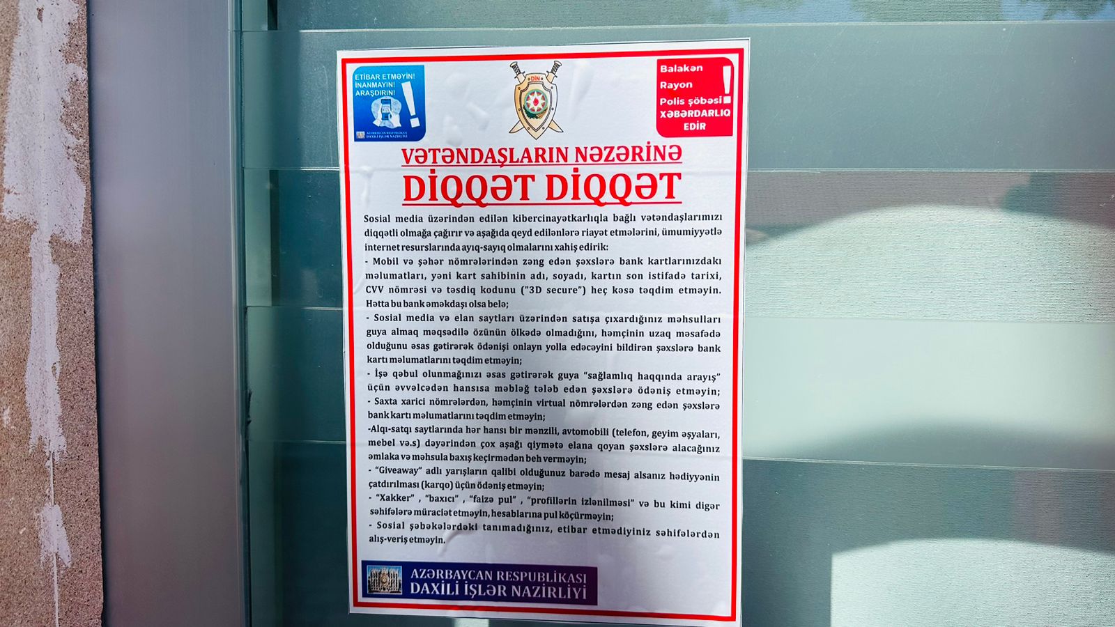 Avtosfer.az xəbər verir ki, Balakən Rayon Polis Şöbəsinin əməkdaşları da bu tədbirlər çərçivəsində kibermaarifləndirmə işinin daha da gücləndirilməsi məqsədi ilə bankomatların, ödəmə terminallarının ətrafında, mağazalarda, eləcə də digər ictimai iaşə obyektlərində məlumatverici lövhələr quraşdırıblar. Həmçinin, sakinlərlə profilaktik söhbətlər apararaq internet resursları üzərindən dələduzluq və oğurluq əməlləri törədən şəxslərin ən çox istifadə etdikləri üsullar barədə onları məlumatlandırıblar.