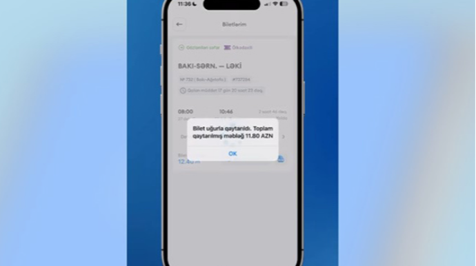 Səyahət planını dəyişib səfər biletini qaytarmaq istəyənlər “ADY Mobile” tətbiqində bunu asanlıqla edə bilərlər.