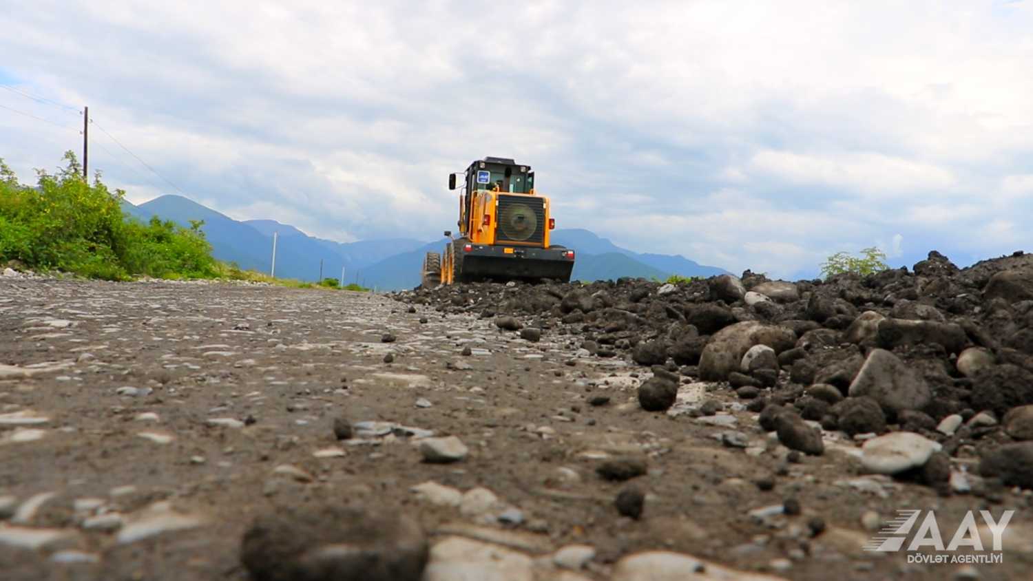 Qaxda bu yolunun yenidən qurulması davam edir - VİDEO - FOTO