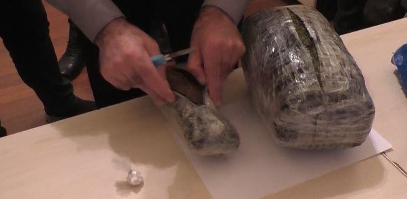 Həmin şəxs saxlanılaraq polis şöbəsinə gətirilən zaman əlindəki qara rəngli çantadan 1 kq 11 qram heroin, 855 qram qurudulmuş marixuana, 15 ədəd metadon həbi aşkar olunaraq götürülüb.