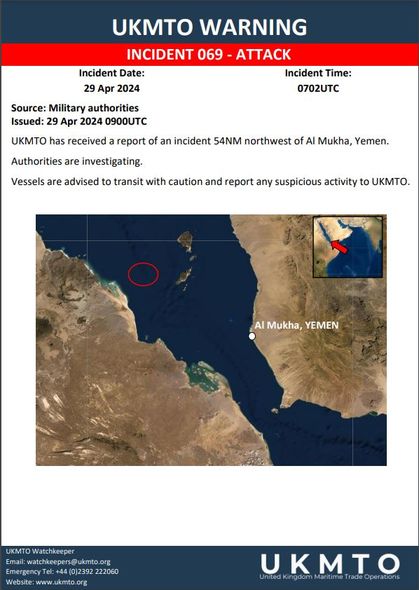 Bildirilir ki, hadisə Yəmənin Moha şəhərindən 54 dəniz mili şimal-qərbdə baş verib.