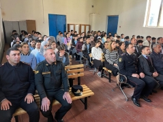 RPŞ-nin rəisinin şəxsi heyət üzrə köməkçisi, polis mayoru Rüstəm Hüseynov Daxili İşlər Nazirliyinin Polis Akademiyası barədə şagirdlərə ətraflı məlumat verərək, təhsil müəssisəsinin yaranma tarixi, inkişafı, ölkəmizdə hüquq elminin inkişafına verdiyi töhfələr, daxili işlər orqanlarının ali təhsilli hüquqşünaslarla təmin olunmasındakı fəaliyyətindən danışıb.