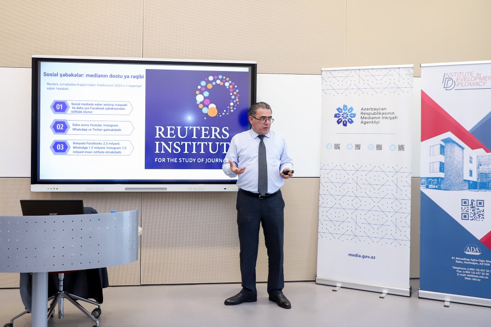 Medianın İnkişafı Agentliyi və ADA Universitetinin İnkişaf və Diplomatiya İnstitutunun birgə təşkilatçılığı ilə media nümayəndələri üçün 15 may 2024-cü il tarixində “Redaksiya siyasəti və peşə davranış qaydaları” mövzusunda təlim keçilmişdir.