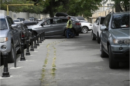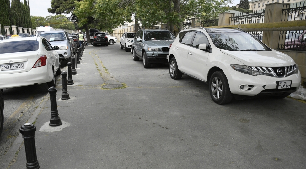 Yasamal rayonunun Heydər Hüseynov küçəsində, əhali arasında “Respublikansi” kimi tanınan Akademik M.Mirqasımov adına Respublika Klinik Xəstəxananın qarşısında nəqliyyatın sıxlığını müşahidə etdik. Həmin ərazidə səkidə avtomobillərin park olunmasının qarşısının alınması istiqamətində Bakı Nəqliyyat Agentliyi (BNA) tərəfindən yol kənarına dirəklər vurulub. Bu qadağa dirəklərinə baxmayaraq, yolun həm sağında, həm də solunda avtomobillər cərgə ilə qanunsuz park edilirdi. Hətta küçənin kənarı qanunsuz park edilmiş avtomobillərlə dolu olduğu üçün bəzi sürücülər nəqliyyat vasitəsini elə birbaşa həmin qadağan olunan səkiyə qaldırırlar. Nəticədə əziyyət çəkənlər yenə də vətəndaşlar olur. Yoldakı bu xaosu nizama salmaq cəhdləri isə gözə dəymirdi.