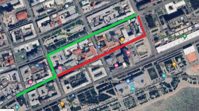 "Sürücülər Üzeyir Hacıbəyli küçəsi ilə dolama yoldan istifadə etməlidirlər - Hökumət Evinin yanından keçərək düz Rəşid Behbudov küçəsi ilə kəsişməyə, sonra düz Bülbül prospektinə, sonra sola, Sahil metrosunun yanından sonra sağa, Zərifə Əliyeva küçəsinə və daha da irəli Azneft dairəsi. Sürücülərdən avtomobil idarə edərkən bunu nəzərə almaları və alternativ yollardan istifadə etmələri tövsiyə olunur", - A.Əsgərli vurğulayıb.