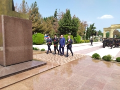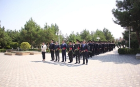Avtosfer.az xəbər verir ki, yubiley tədbirlərinin əvvəllərində polis əməkdaşları və qonaqlar Ulu Öndər Heydər Əliyevin abidəsini ziyarət edərək, önünə tər çiçəklər düzüblər.