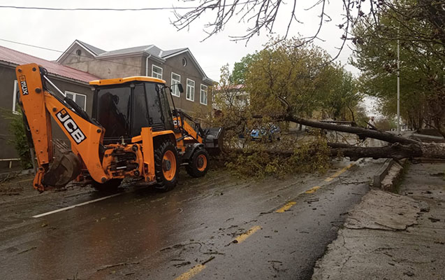 Güclü külək nəticəsində aşan ağacların ərazidən götürülməsi və ərazi üzrə selötürücü qurğuların nəzarətdə saxlanılması təmin olunur.