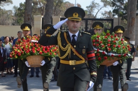 Azərbaycanın ərazi bütövlüyünün qorunması və bərpasında, eləcə də tarixi torpaqlarımızın işğaldan azad edilməsində həm Birinci, həm də İkinci Qarabağ müharibəsində şəhid olanların xatirəsi bir dəqiqəlik sükutla yad edilib, hərbi orkestrin müşayiəti ilə Azərbaycan Respublikasının Dövlət Himni ifa olunub.