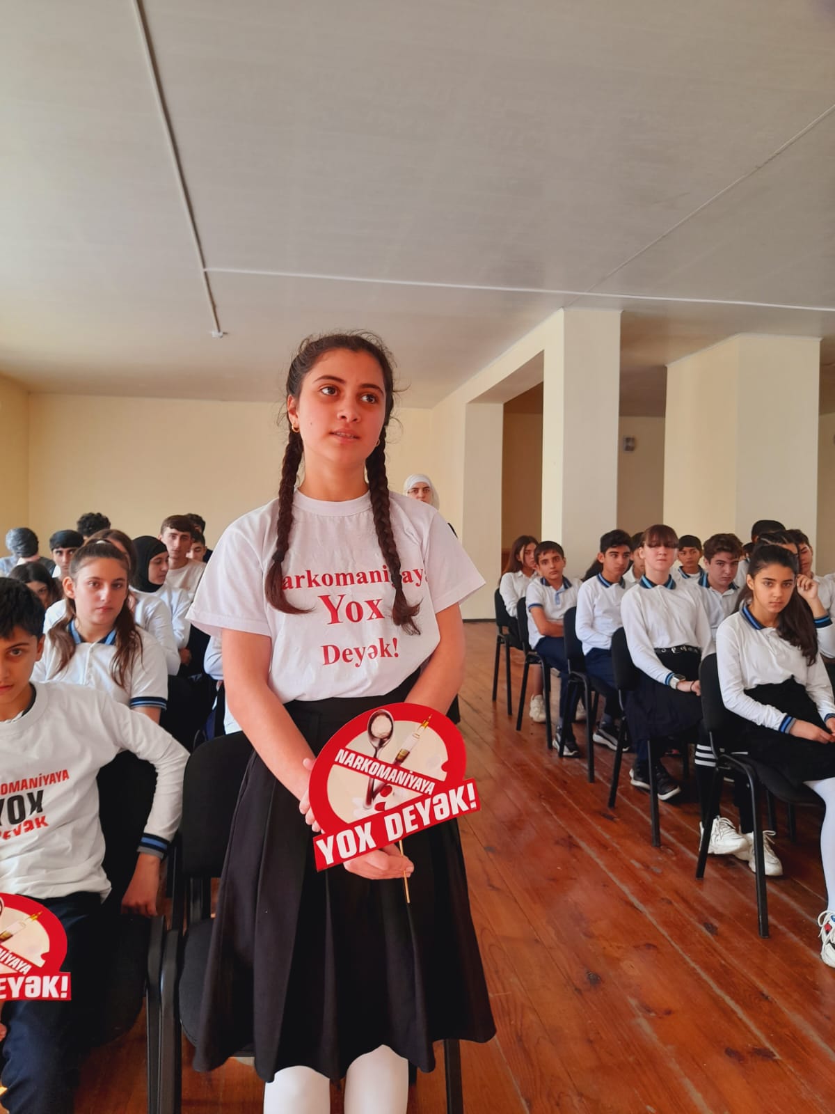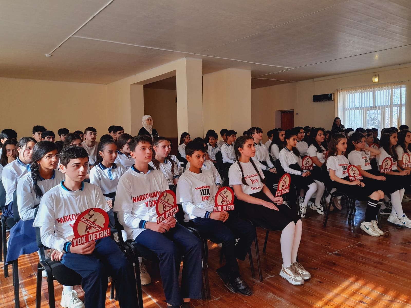 Tədbirdə çıxış edən rəis müavini polis, polkovnik-leytenantı Farid Vəliyev dövrümüzün ağır bəlası olan narkomaniyanın insanlara vurduğu mənəvi və maddi zərərlərdən danışıb. Bu bəlaya düçar olmuş şəxslərin sağlam həyata qayıtmasının çox çətin olduğunu qeyd edən rəis müavini, şagirdlərə diqqətli olmağı, narkotik aludəçisinə çevrilmiş şəxslərdən uzaq durmağı tövsiyə edib.