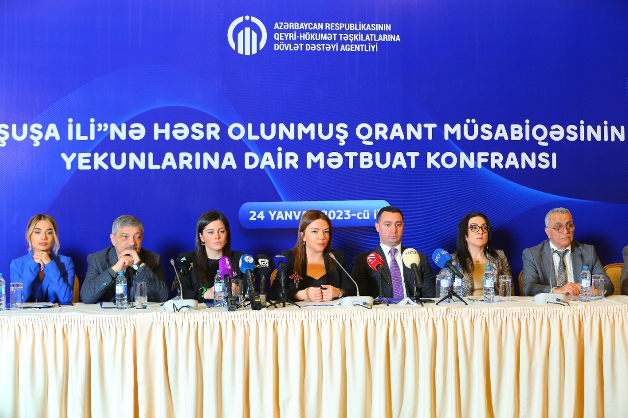 Yanvarın 24-də Qeyri-Hökumət Təşkilatlarına Dövlət Dəstəyi Agentliyi “Şuşa İli”nə həsr olunmuş qrant müsabiqəsinin yekunlarına dair mətbuat konfransı keçirib.