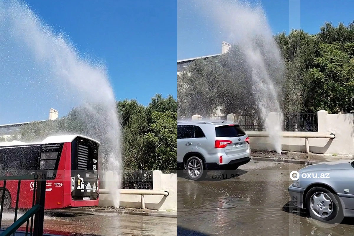 Suyun tapılmayan vaxtı Lökbatanda boru fontan vurdu - FOTO - VİDEO