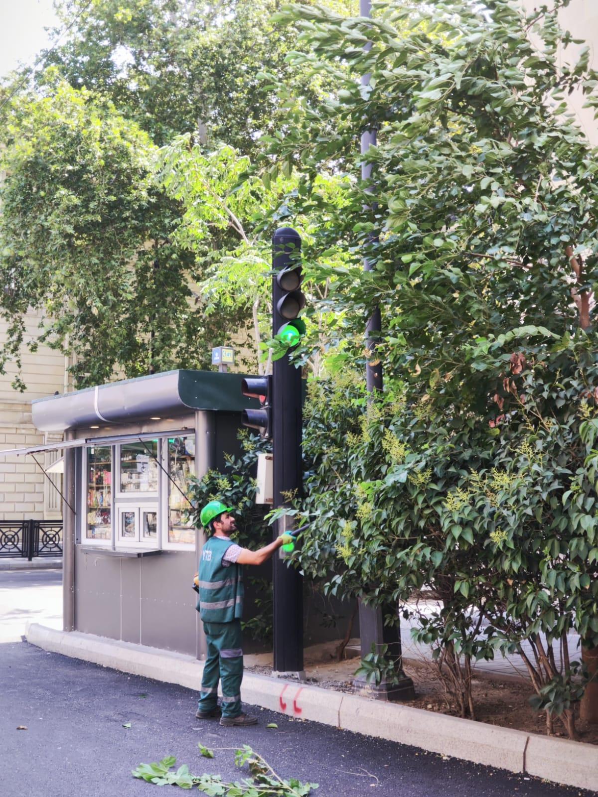Bakıda ağacların inkişaf dövründə onların budaqları yaxınlıqda quraşdırılan bəzi işiqfor və yol nişanlarının görünməsinə maneə yaratdığı üçün budanır.