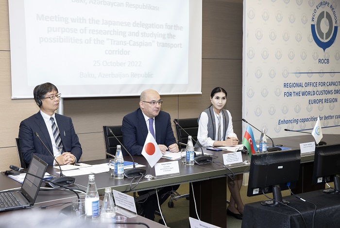 Oktyabrın 25-də Ümumdünya Gömrük Təşkilatı Potensialın Gücləndirilməsi üzrə Avropa Regional Ofisində Dövlət Gömrük Komitəsi rəhbərliyinin “Trans-Xəzər” nəqliyyat dəhlizinin imkanlarının araşdırılması və öyrənilməsi məqsədilə ölkəmizdə səfərdə olan Yaponiya nümayəndə heyəti ilə görüşü keçirilib.
