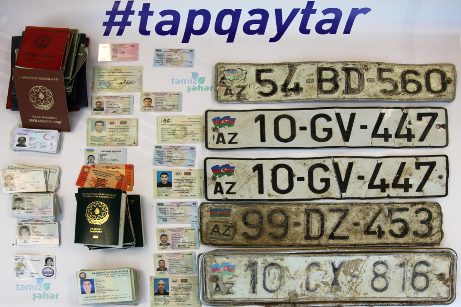 “Təmiz Şəhər” ASC-nin təsərrüfat sahələrindən olan Balaxanı bərk məişət tullantılarının çeşidlənməsi zavoduna təhvil verilən tullantılar çeşidlənərkən içərisindən xeyli sayda sənədlər və nəqliyyat vasitələrinə aid dövlət nömrə nişanları tapılır. Tapıntıların sahiblərinə qaytarılması məqsədilə “Tap qaytar” layihəsi həyata keçirilir.