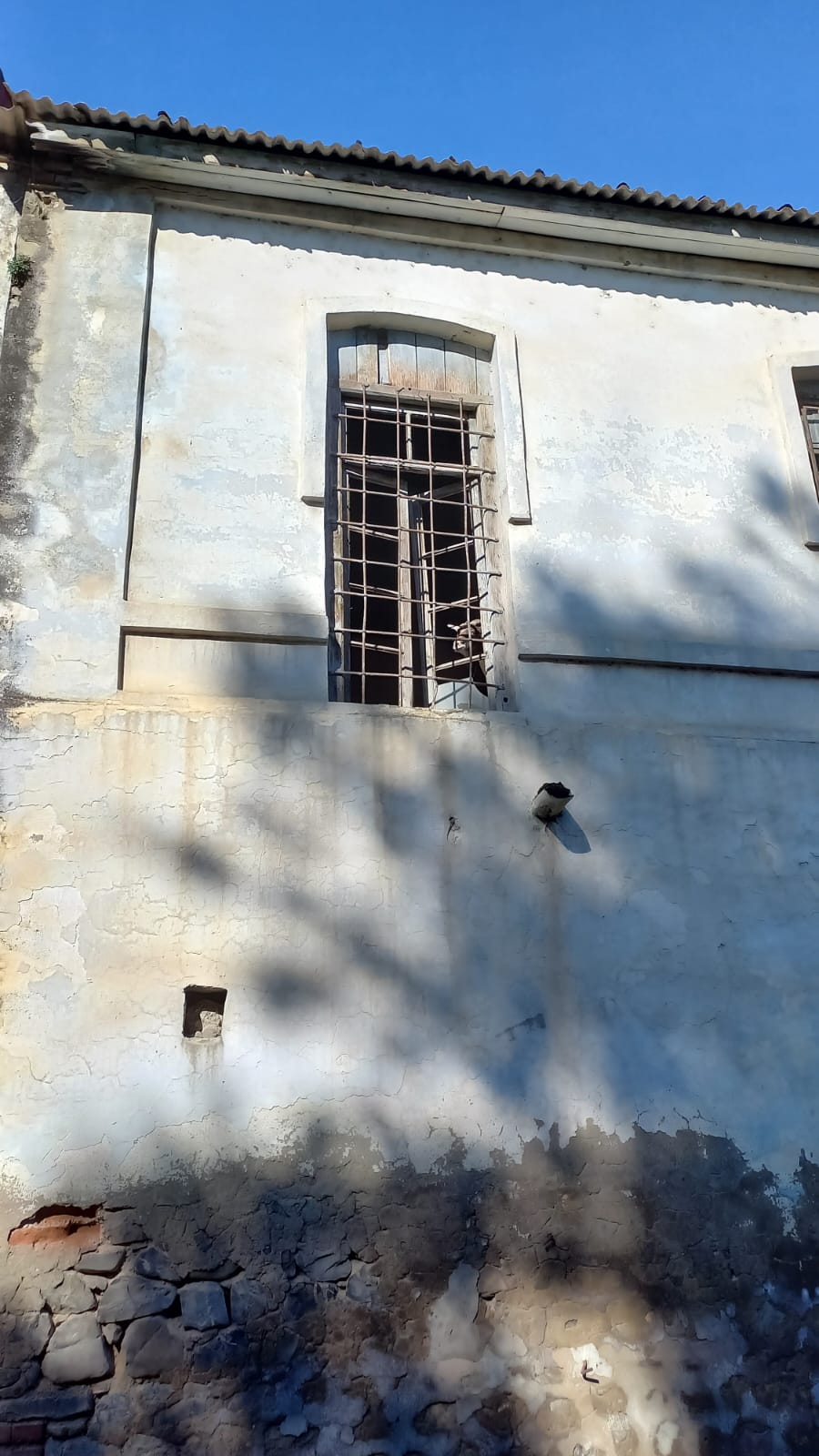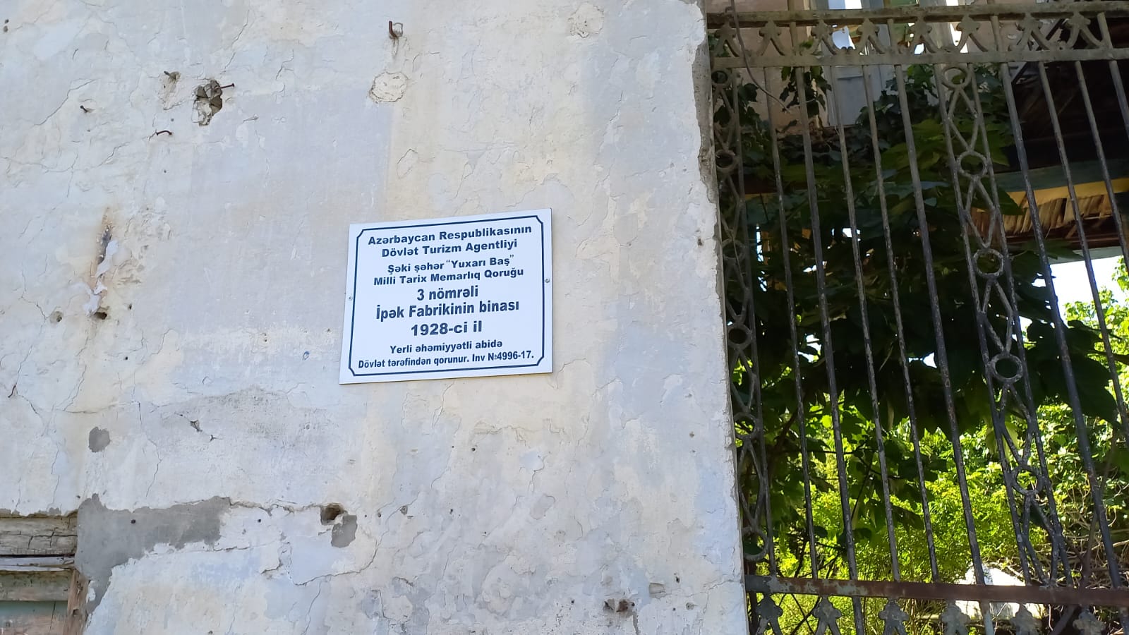 Binanın girişindəki elandan məlum olur ki, tikili yerli əhəmiyyətli abidə statusundadır və dövlət tərəfindən qorunur. Çox gözəl. Amma belə qorunma olurmu? Darvazadan içəri nəzər yetirdikdə gördük ki, həyətdə cəngəllikdir, kol-kosun hündürlüyü adamın boyunu aşır. Tikili özü də uçub-tökülür.