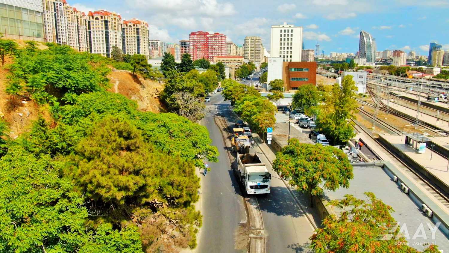 Ortalama eni 18-19 metr olan prospektdə hazırda köhnə asfalt-beton örtüyünün aşınma qatının frezlənməsi işləri həyata keçirilir.