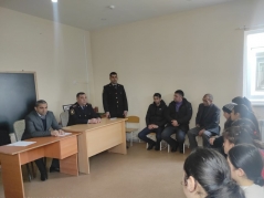 Görüşdə RPŞ-nin rəis müavini, polis polkovnik-leytenantı Urman Ağayev çıxış edərək bəşəriyyətin ən böyük probleminə çevrilən narkomaniyanın cəmiyyət üçün yaratdığı fəsadlarından danışıb. Şagirdlərə bu vasitələrin insan sağlamlığına vurduğu zərərlərdən söz açan rəis müavini, narkotiklərin qanunsuz dövriyyəsi ilə məşğul olan şəxslərə qarşı aparılan qətiyyətli tədbirlər barədə məlumat verib.