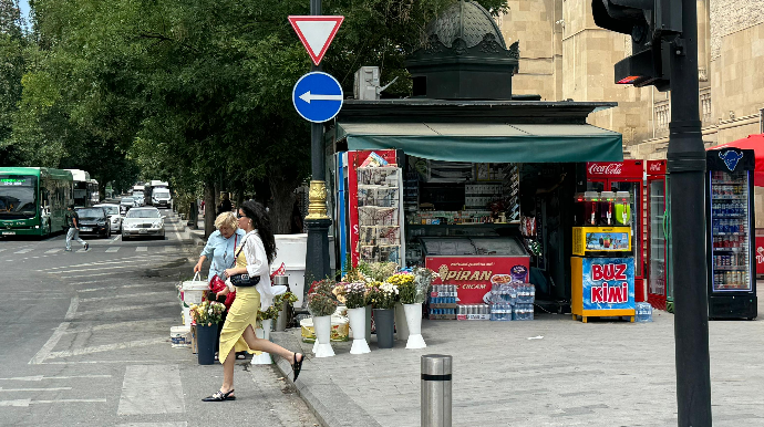 Belə ki, sahibkar köşkün ətrafına soyuducuları səkini zəbt edəcək şəkildə düzməklə yanaşı, üstəlik artıq yolu da zəbt etməyə başlayıb. Rayonun Azadlıq prospekti, “28 Mall”un qarşısındakı bu köşkün sahibi 14 nömrəli marşrut avtbusunun yolunun tam üstündə - təhlükəsizlik adacağında gül satır.
