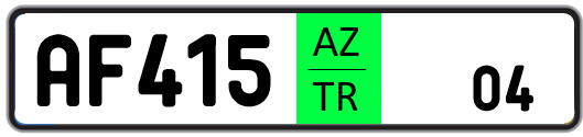 Sol tərəfdə ensiz yaşıl zolaq yerləşir. Bu zolaqla kəsr formalı "AZ" (surətdə) və "TR" (məxrəcdə) kodları qeyd olunub. Xırda şriftlərlə sağ küncdə qeyd olunan rəqəmlər isə avtomobil aid olduğu regionun kodunu bildirir.
