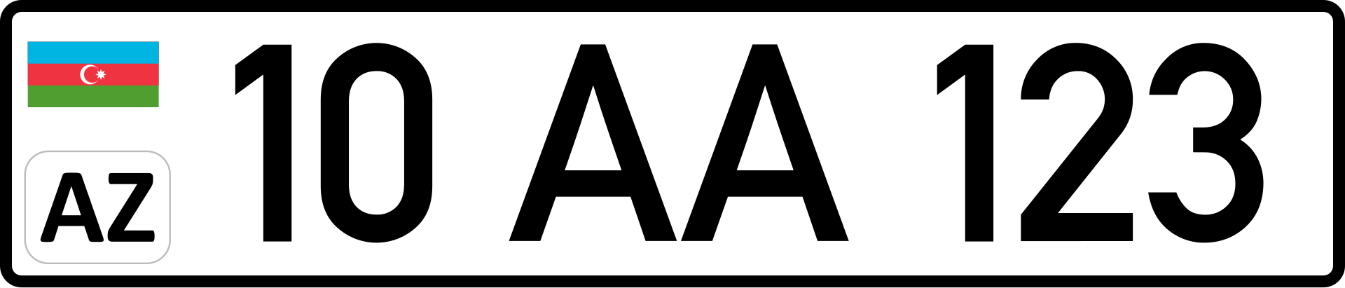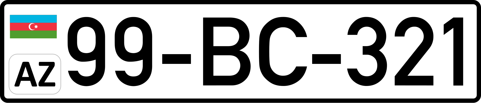 Ağ fonda qara simvollardan istifadə olunur. İki hərf və defis istifadə olunmadan yazılmış 3 rəqəmdən ibarətdir.