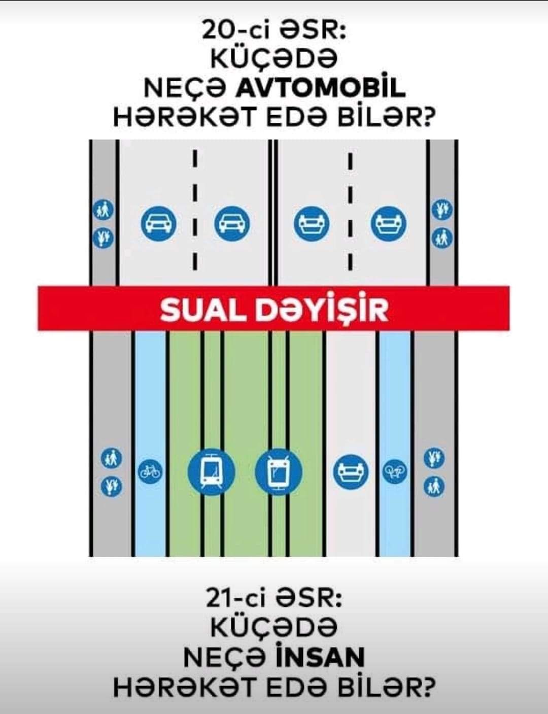 Avtosfer.az xəbər verir ki, nəqliyyat eksperti Rauf Ağamirzəyev sosial şəbəkə hesabında paylaşım edərək bildirib ki, illərlə avtomobillərin üstünlük təşkil etdiyi şəhərlərdə piyadalar üçün yaradılan şəraitə ilk etiraz edənlər çox vaxt elə avtomobil sürücüləri olur.