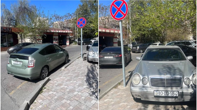 Xoşagəlməz mənzərəylə bağlı izləyicilərdəm biri Avtosfer.az-ın “İnstagram” ünvanına fotoşəkillər göndərib. Belə ki, 77-FP-187 dövlət nömrə nişanlı “Toyota Prius” markalı və 10-DD-554 dövlət nömrə nişanlı “Mercedes” markalı avtomobillərin sürücüləri dayanma-durma qaydalarını pozublar. Fotoşəkildən göründüyü kimi, onlardan biri maşını səkidə park edərək piyadaların yolunu kəsib. Digər sürücü isə maşını yolayrıcında saxlayaraq nəqliyyat vasitələrinin hərəkətinə əngəl törədib. Eyni zamanda ərazidə dayanma və durmanı qadağan edən nişan mövcuddur. Şikayətçi uşaq arabasıyla ərazidən keçərkən çətinlik yaşadığını bildirib.