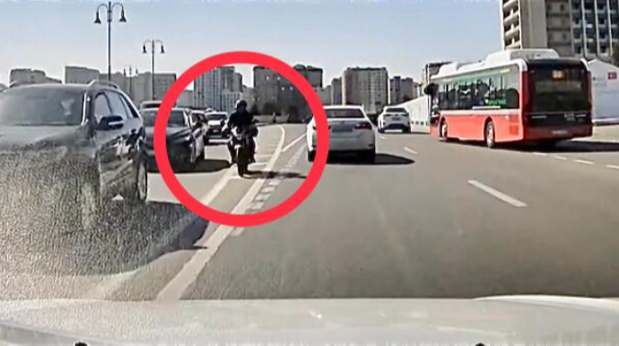 Paytaxtın Nərimanov rayonu, Fətəli xan Xoyski küçəsində qayda pozan motosiklet sürücüsü görüntülənib.