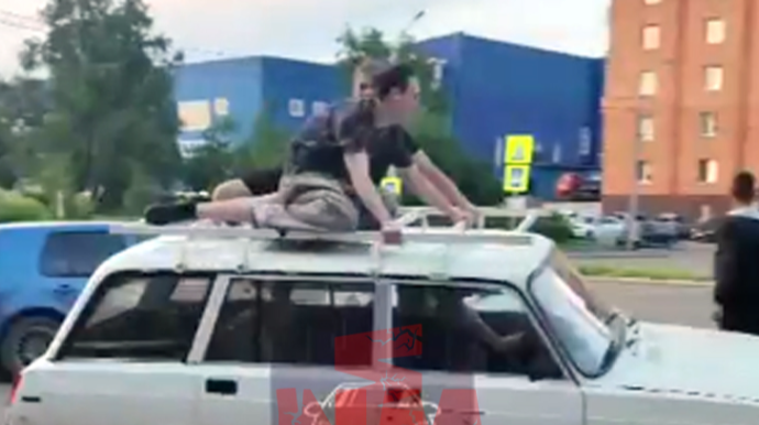 Avtomobilin damında 2 gənci otuzdurub şəhər küçələrində təhlükəli hərəkətlər edən sürücü cərimələnib. Avtosfer.az xəbər verir ki, Rusiyanın Krasnoyarsk şəhərində baş verib.