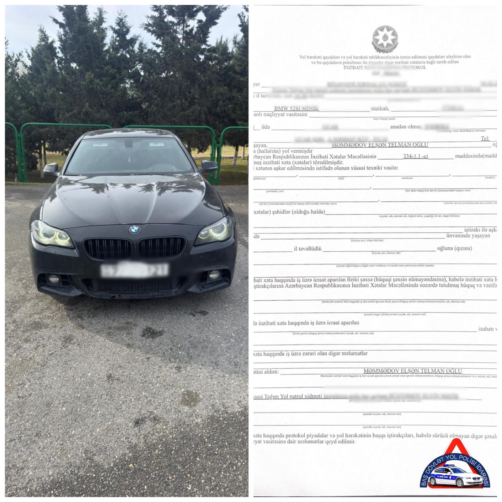 DİN-in Mətbuat xidmətindən Avtosfer.az-a verilən məlumata görə, sənədlərin yoxlanılması zamanı avtomobili idarə edən Elşən Məmmədovun sürücülük hüququnun olmaması aşkarlanıb.