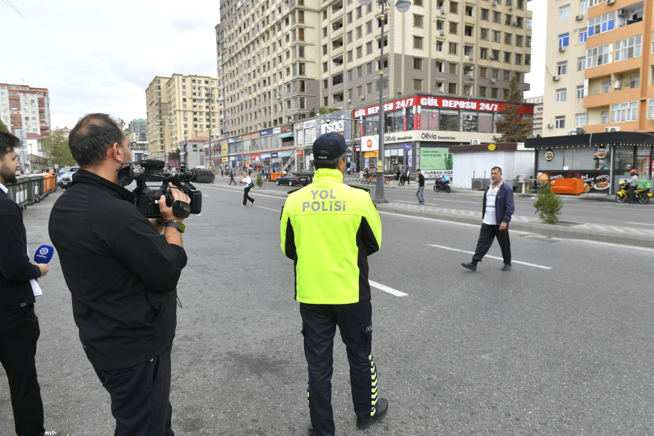 AZƏRTAC-ın əməkdaşları Bakı Şəhər Dövlət Yol Polisi İdarəsinin (BŞDYPİ) nümayəndəsi və nəqliyyat məsələləri üzrə ekspertin iştirakı ilə paytaxtın Yasamal rayonu, Abbas Mirzə Şərifzadə küçəsində piyadaların öz həyatlarını riskə ataraq onlar üçün nəzərdə tutulmayan yerdən yolu keçməsi prosesini yaxından müşahidə edib, həmçinin DYPİ əməkdaşlarının piyadalarla maarifləndirici söhbətini lentə alıb.