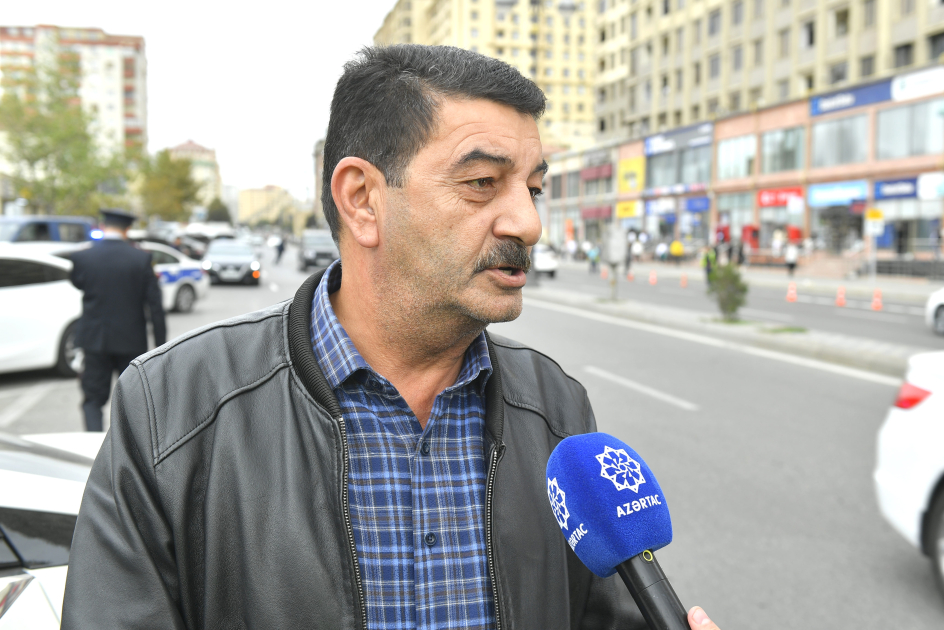 Bayaqdan çəkilişimizi izləyən piyada R.Cərullayev isə mikrofonumuza yaxınlaşır və piyadaların qaydalara əməl etməməsindən narahat olduğunu dilə gətirir, jurnalistlərin iştirakı ilə bu cür maarifləndirici tədbirlərin keçirilməsini müsbət qiymətləndirir: “Piyadalar yeraltı metro keçidlərindən istifadə etməlidir. Valideynlər yolu uşaq arabası ilə, körpələrlə birgə keçirlər. Mən də görürəm ki, piyadalar keçidlərdən istifadə etmir. Hesab edirəm ki, onların qaydalara riayət etməsi üçün yüksək cərimələr tətbiq edilməlidir. Mən bir neçə dəfə piyadaların iştirakı ilə baş verən yol-qəza hadisələrinin şahidi olmuşam. Bəlkə bir sürücünün səhhəti qəfil pisləşdi, hər şey ola bilər...”