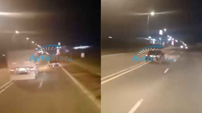 Yük maşınları ilə məzələnib 10 km yolu qəza şəraiti yaratdı - 10-NS-064 - VİDEO