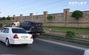 Aeroport yolunda iki avtomobil toqquşdu - VİDEO