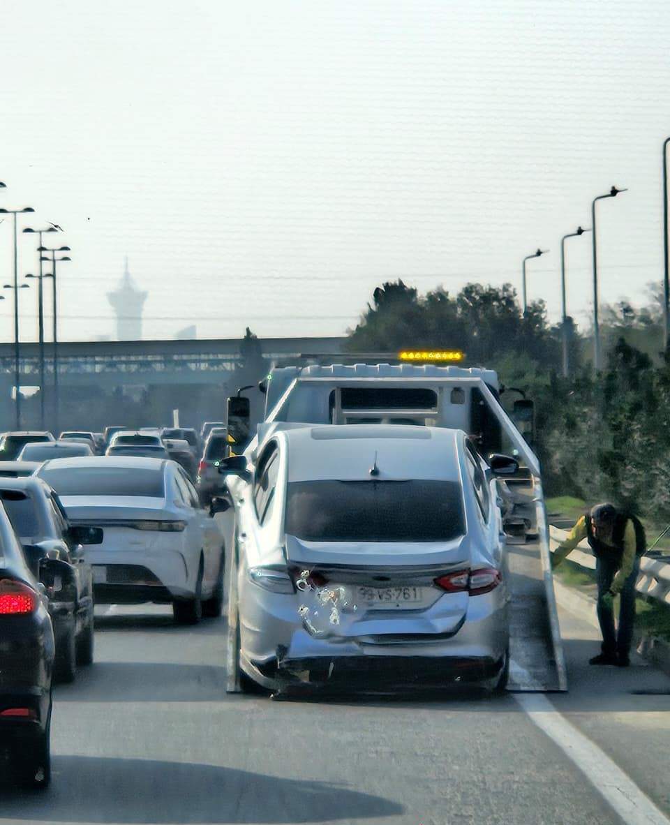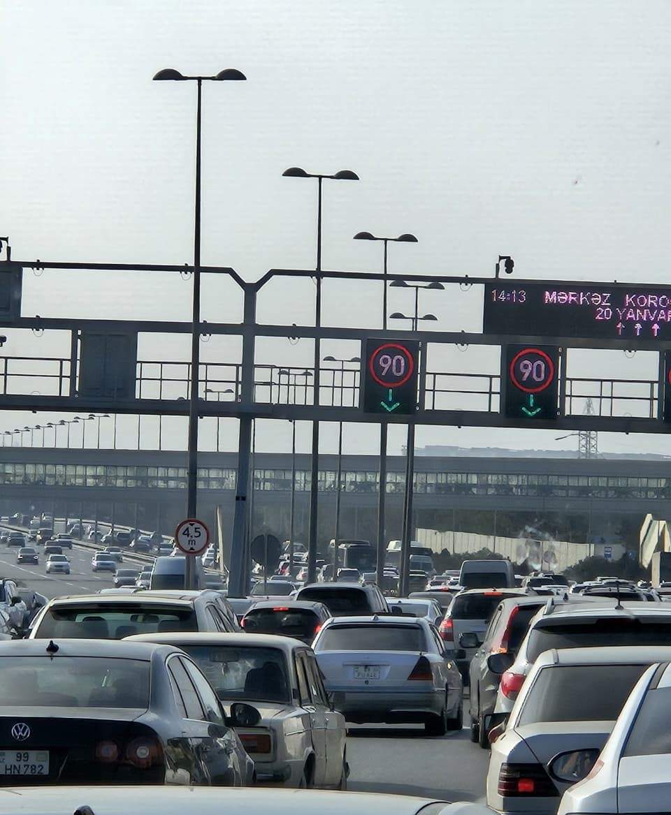 Aeroport yolunda qəza tıxaca səbəb oldu - FOTO - VİDEO