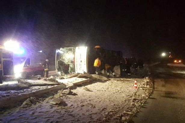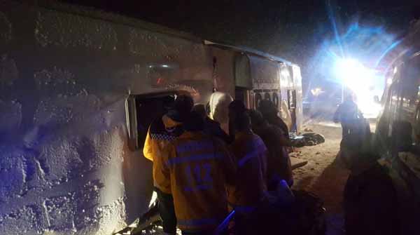 Türkiyədə Tuncelidən Ankaraya gedən sərnişin avtobusu, qar və yerin sürüşkən olması səbəbindən idarəetmədən çıxaraq aşıb. Avtosfer.az DHA-ya istinadən xəbər verir ki, ilkin məlumata görə, qəza nəticəsində 3 nəfər ölüb, 20 nəfər isə xəsarət alıb.