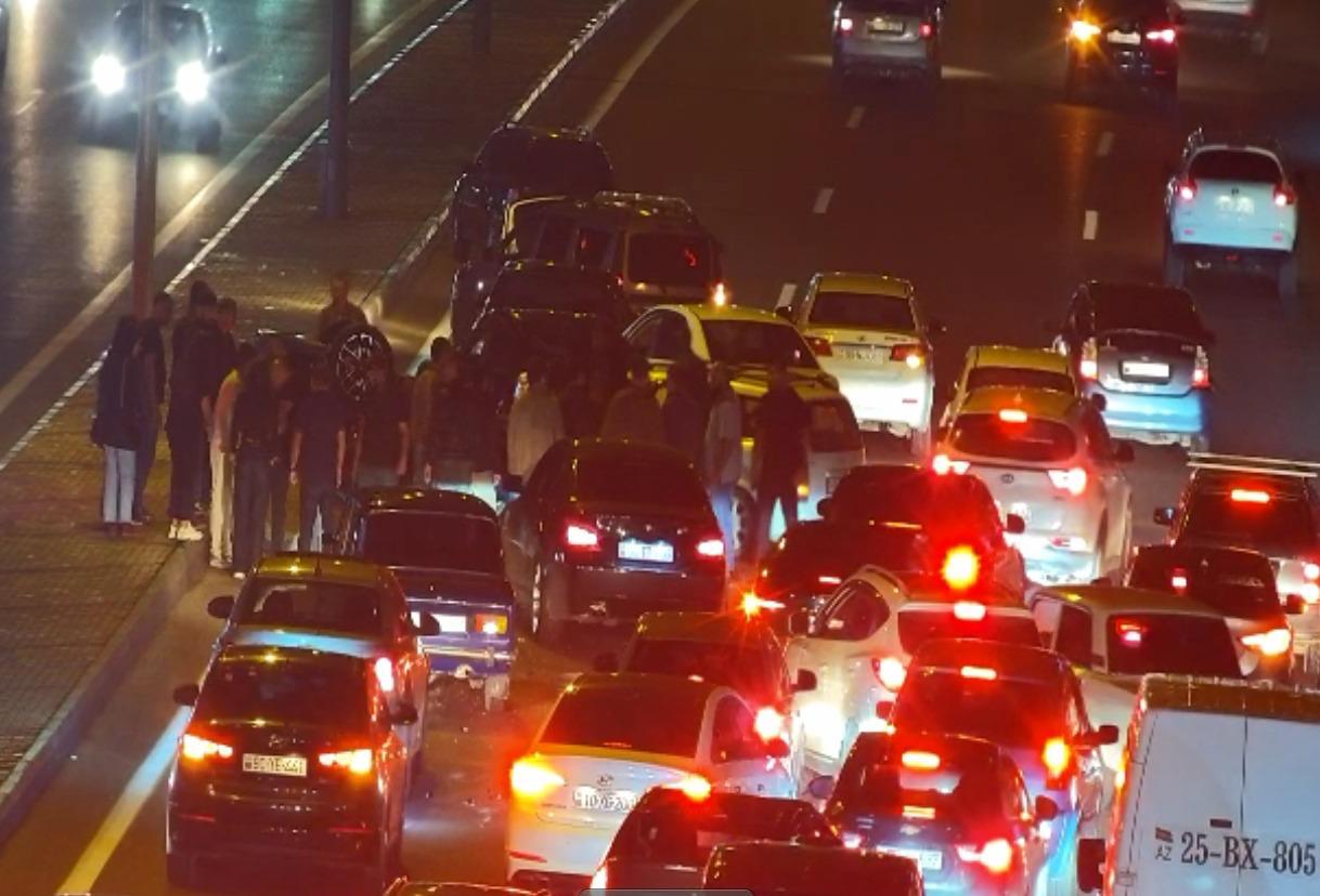 Bakı Olimpiya Stadionunun yaxınlığında qəza olub, yolda sıxlıq yaranıb - FOTO