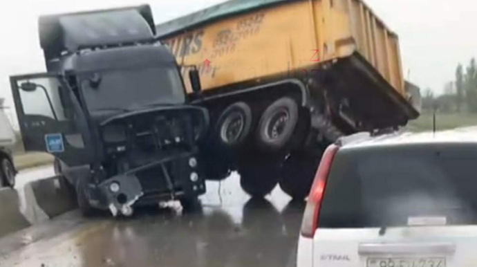 Xızı rayonunda ağırtonnajlı yük maşınlarının iştirakı ilə yol-nəqliyyat hadisəsi olub.