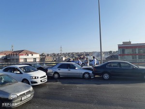 Səhər saatlarında Bakı-Quba yolunda yol qəzası baş verib. Avtosfer.az "Report"a istinadən xəbər verir ki, Xırdalan-Masazır dairəsinin üzərindəki körpüdə "Mercedes" markalı avtomobil BMW-yə, digər "Mercedes" isə arxadan ona çırpılıb. Hər 3 maşına ciddi ziyan dəyib. Hadisə yerinə sığorta və polis işçiləri cəlb olunub. Qəza nəticəsində yolda tıxac yaranıb. Hazırda DYP əməkdaşları yolda maşınların hərəkətini tənzimləyir.